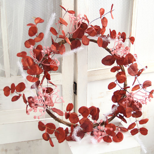 Orange Red Color Eucalyptus Leaf Wreath Dia Door Wall Decoration Factory Price Artificial Plant Flower Ins Eucalypt