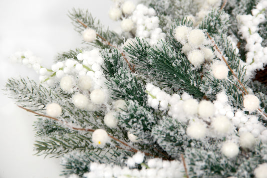 Artificial Christmas Wreath, 24" Grapevine Flocked Glitter Wreath with White Berries for Decoration